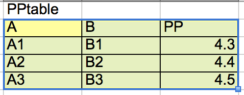 the following range of cells, which is named PPtable: